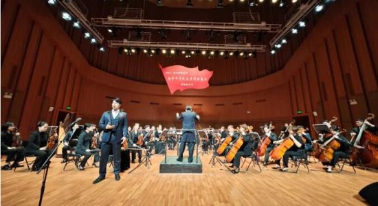 音樂會(huì)在交響樂《紅旗頌》的旋律中拉開帷幕。小號(hào)奏出的音符,把觀眾帶到開國(guó)大典上國(guó)旗冉冉升起那激動(dòng)人心的時(shí)刻。弦樂奏出舒展、優(yōu)美的主題,向觀眾講述在紅旗引導(dǎo)下,無數(shù)英烈英勇奮戰(zhàn)、奮發(fā)向上的革命氣概和感人故事。簡(jiǎn)短有力的圓號(hào),豪邁而又激昂,象征著紅旗飄揚(yáng),帶領(lǐng)全國(guó)各族人民邁開巨人般的步伐走進(jìn)新時(shí)代。蕩氣回腸的音樂深深感染了現(xiàn)場(chǎng)觀眾,座席上響起陣陣掌聲。
