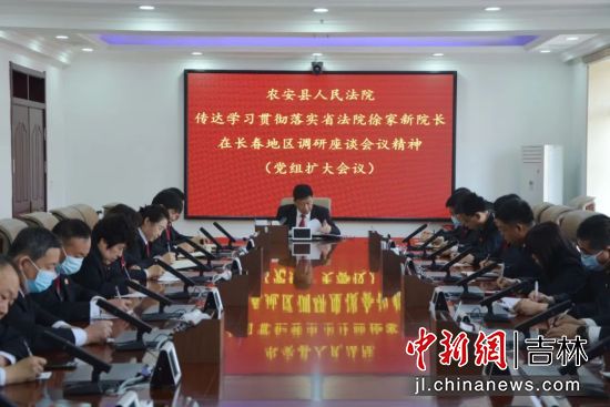 中新網(wǎng)吉林新聞5月22日電 (譚偉旗 高子超)近日,農(nóng)安縣人民法院召開黨組會、黨組(擴(kuò)大)會議、府院聯(lián)動會議,傳達(dá)部署省市法院重點工作,貫徹落實會議精神。