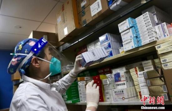 北京某社區(qū)衛(wèi)生服務(wù)中心,醫(yī)務(wù)人員正將配送到的感冒藥放入藥架。 中新社記者 易海菲 攝