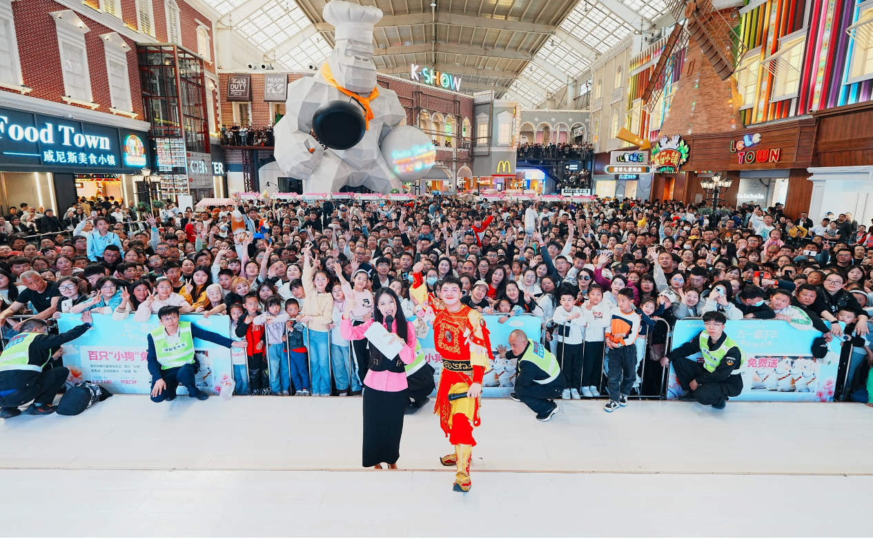 5月3日中午,“雪餅猴”準時出現(xiàn)在新天地購物公園,他先來到三樓“威尼斯水城”,親自體驗了“網(wǎng)紅”腳踏船。隨后,他耍起金箍棒與粉絲互動,“搶”到簽名照的游客,發(fā)出一聲聲尖叫。