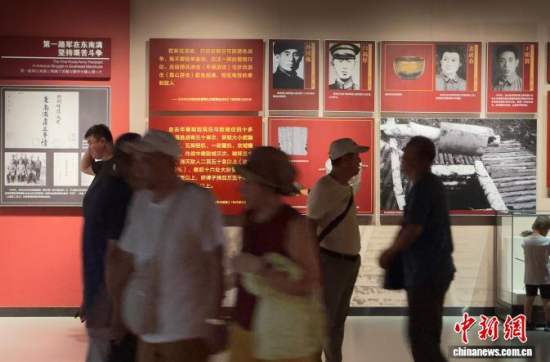 參觀者在東北淪陷史陳列館重溫歷史!」 攝