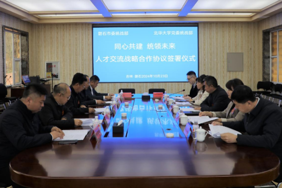 【原標(biāo)題:中共磐石市委統(tǒng)戰(zhàn)部、中共北華大學(xué)黨委統(tǒng)戰(zhàn)部共同舉辦“同心共建 統(tǒng)領(lǐng)未來”人才交流戰(zhàn)略合作協(xié)議簽署儀式】
