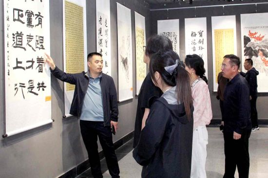 活動現(xiàn)場氛圍熱烈,民進(jìn)會員、書畫愛好者等觀眾絡(luò)繹不絕,大家在書法作品前凝神品讀字里行間的民進(jìn)精神,在絢麗畫作前輕聲探討,贊嘆創(chuàng)作技藝。參展作品主題鮮明,以書言志、以畫傳情,既追憶民進(jìn)先賢風(fēng)骨,又禮贊新時(shí)代豪邁征程,將民進(jìn)精神與藝術(shù)追求相融,充分彰顯了民進(jìn)人“為時(shí)代畫像、為時(shí)代立傳、為時(shí)代明德”的文化自覺,不僅是對民進(jìn)發(fā)展歷程的深情回望,更是對未來奮進(jìn)之路的美好展望。