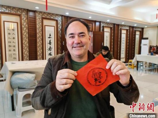 2月15日(大年初六),達奇在長春文廟博物館參與迎新春拓印福字活動!(受訪者供圖)