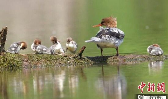 在吉林園池濕地國(guó)家級(jí)自然保護(hù)區(qū)頭道白河支流,工作人員監(jiān)測(cè)到40多只中華秋沙鴨,4個(gè)天然巢、14個(gè)仿生巢都有中華秋沙鴨入住。該保護(hù)區(qū)管理局資源科科長(zhǎng)韓銘介紹,已有5個(gè)巢成功完成孵化,新跳巢雛鳥數(shù)量有51只,其他巢的中華秋沙鴨也在孵化中。