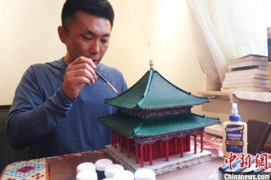 “根本停不下來,比小時候玩的積木更吸引我!闭f話時,王雪松的眼睛一直沒有離開“五爺廟”。那是她的一件新玩具,她在用顏料彩繪房梁,這件新玩具已經進入上色階段,不日將完工。