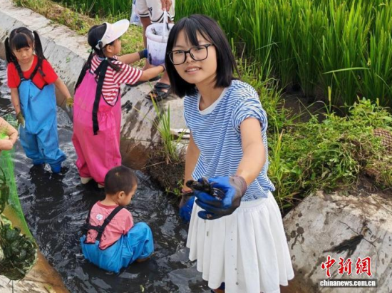 吉林省地處世界黃金水稻帶,出產(chǎn)的稻米天下聞名。來自臺(tái)南的臺(tái)胞黃俊杰帶著兩個(gè)女兒穿上橡膠靴,拿上網(wǎng)兜,在田野里看稻浪、抓螃蟹。