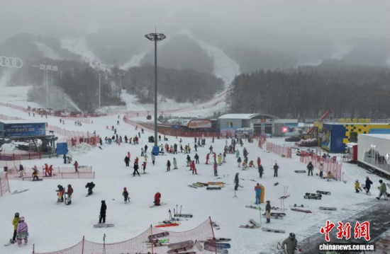 眾多滑雪愛好者來到吉林北大湖雪場!〖质斜┰囼瀰^(qū)北大湖雪場供圖