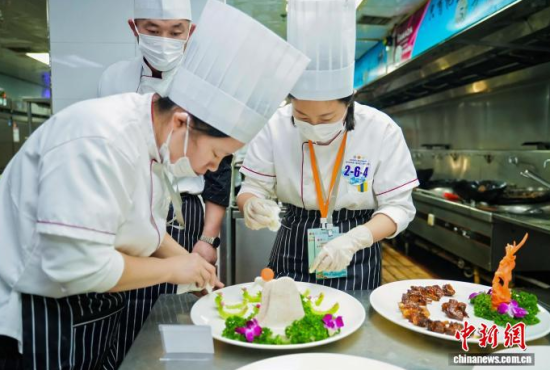 中新社吉林11月17日電 (記者 石洪宇)吉林市第一屆中醫(yī)人參藥膳大賽17日拉開帷幕。18個團隊現(xiàn)場烹制近百道藥膳,推動中藥材“從藥柜走向餐桌”。主辦方介紹,比賽的目的之一是做好創(chuàng)新,以“藥食同源”理念吸引年輕人的關(guān)注。