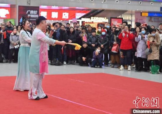 1月26日,在長(zhǎng)春站候車大廳,長(zhǎng)春站、沈陽(yáng)鐵路公安局長(zhǎng)春公安處等多個(gè)部門聯(lián)合為旅客帶來(lái)了系列精彩表演, 吸引大批過(guò)往旅客駐足觀看、參與。當(dāng)天,2024年春運(yùn)啟動(dòng)。2024年春運(yùn)自1月26日開始至3月5日結(jié)束,為期40天。春運(yùn)期間,長(zhǎng)春站預(yù)計(jì)發(fā)送旅客341萬(wàn)人次,日均8.5萬(wàn)人次。(完)