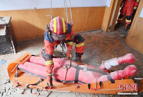 圖為救援隊(duì)員進(jìn)行綜合營救訓(xùn)練。張瑤 攝