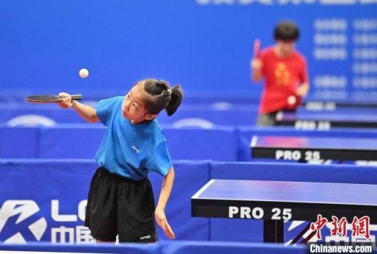 8月6日,吉林長春,選手在比賽。當(dāng)天,2024年全國少兒乒乓球錦標(biāo)賽預(yù)賽第三站(女子)在長春開賽,來自全國47個代表隊的少兒乒乓球運動員同場比拼球技。(中新社記者 張瑤 攝)
