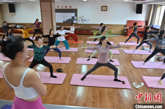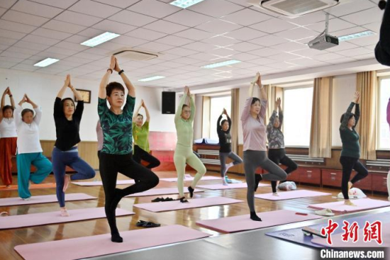 10月24日,在位于吉林長(zhǎng)春的吉林省老年大學(xué),老年人在練習(xí)瑜伽。近來,越來越多老年人在運(yùn)動(dòng)中煥新生活,瑜伽也不再是年輕人的專屬。在老年人的眼中,瑜伽鍛煉了體態(tài)和精神面貌,讓他們看起來“越來越年輕”。中新社記者 張瑤 攝