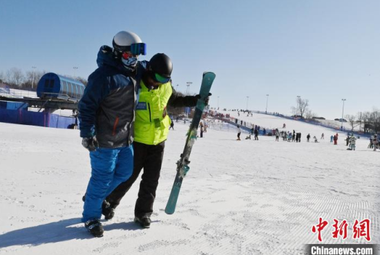1月15日,在位于長春的天定山滑雪場,何海東在檢查雪道護網(wǎng)。何海東是一名滑雪巡救員,雪季期間,雪友數(shù)量激增,何海東的工作也變得異常繁忙。他要在零下二十?dāng)z氏度的天氣中日行三萬步,全面巡查雪道環(huán)境,排查安全隱患,如有意外他將第一時間對傷者實施救助。中新社記者 張瑤 攝