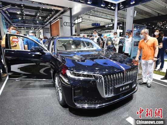 在長(zhǎng)春車展上展出的紅旗品牌汽車(資料圖) 張瑤 攝