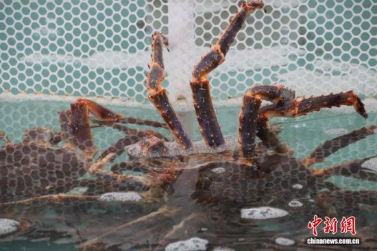 中新社記者近日走進(jìn)這座吉林省對俄公路口岸了解到,每年經(jīng)此入境的俄羅斯帝王蟹超過150萬只,占全國市場的八成左右,是中國進(jìn)口帝王蟹最重要的門戶。
