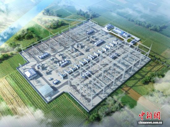 吉林松原扶余(萬泉)500千伏輸變電工程-變電站鳥瞰圖。(國(guó)網(wǎng)吉林省電力有限公司供圖)